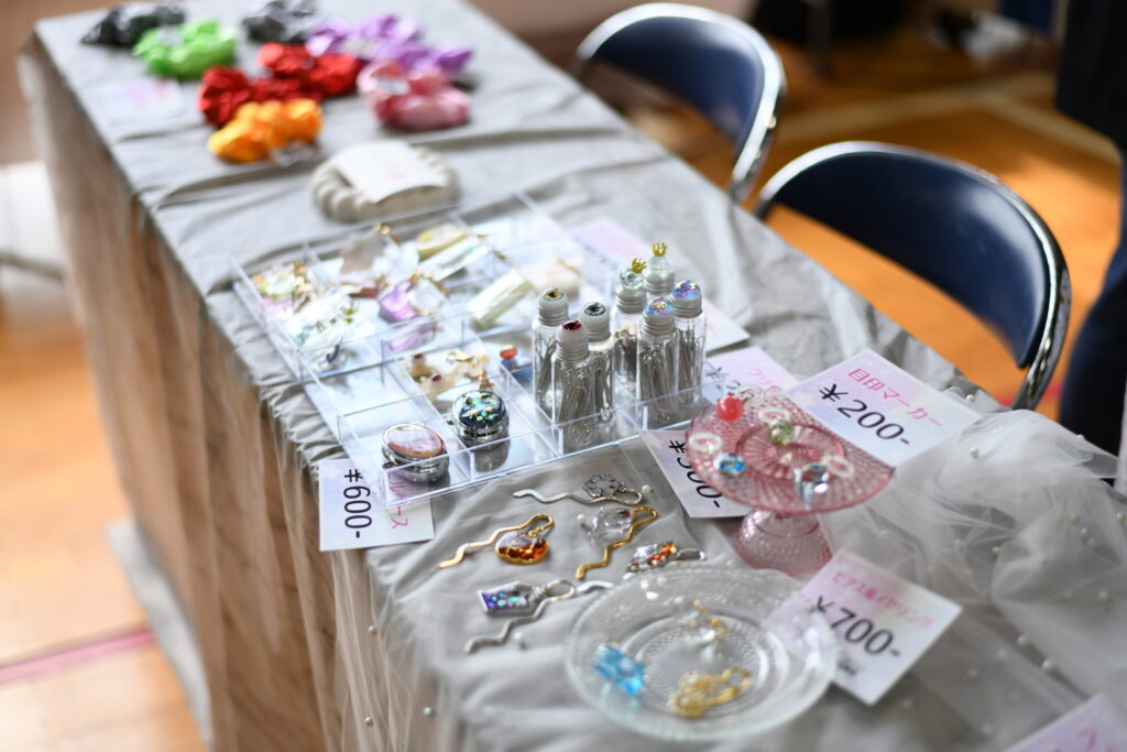 イベント開催時から子どもたちが買い物を楽しんでいたのは「えむレジンDIY教室」さんのショップブースです。